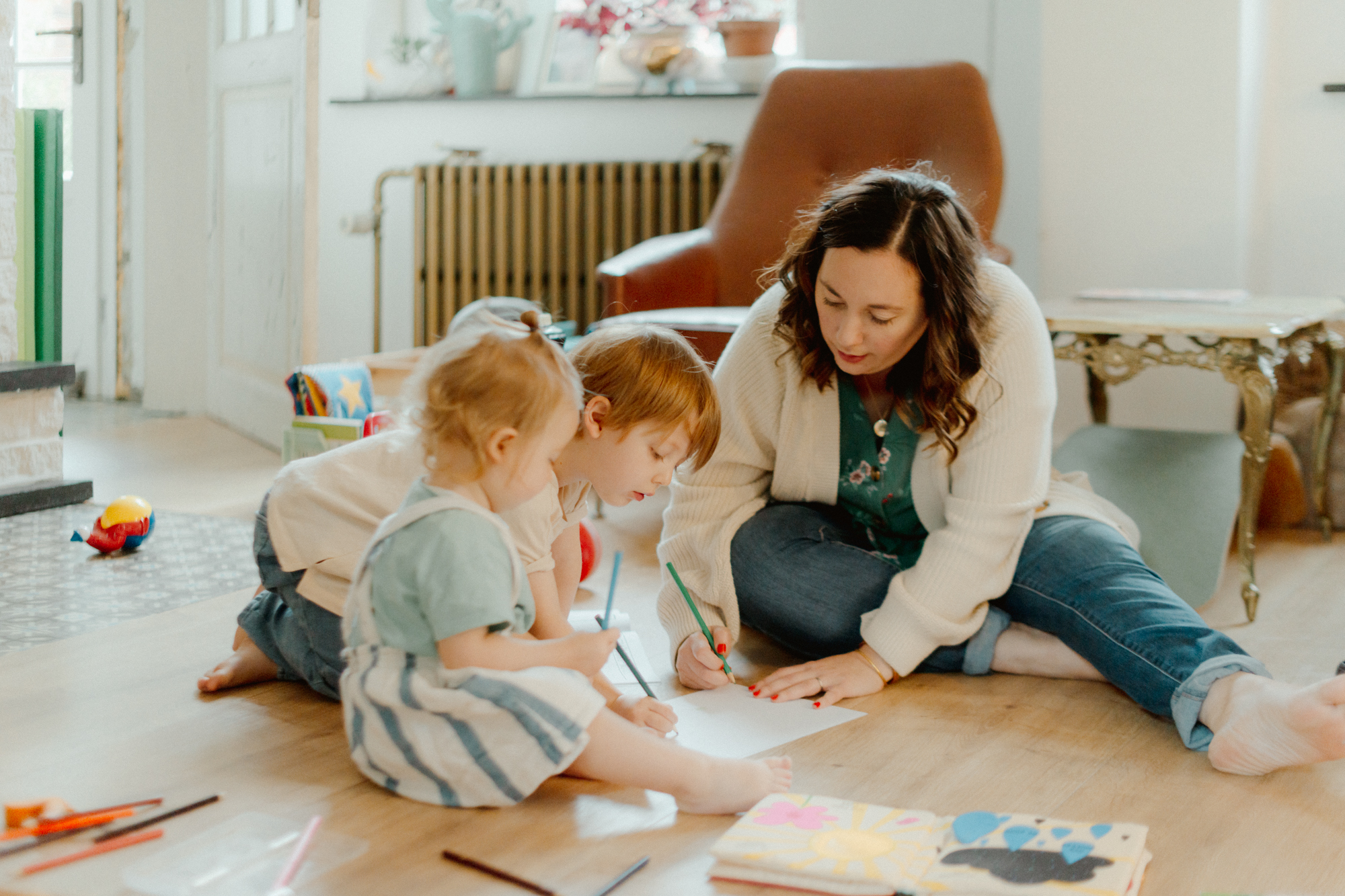On s’amuse, on se chamaille, on se chatouille, on court, on rit… Et quand tout le monde est bien détendu, on passe à des prises de vue un peu plus douces avec câlins et bisous à la clé. Ou tout l’inverse : rien n’est figé !